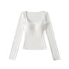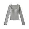 Korean Square Neck Slimming Long Sleeve T-Shirt with Chest Pads and Waist-Cinching Design for Women - Spring/Autumn — купить товар онлайн с бесплатной доставкой по всему миру!