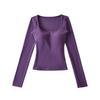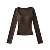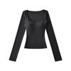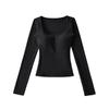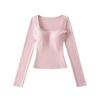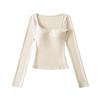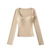 Korean Square Neck Slimming Long Sleeve T-Shirt with Chest Pads and Waist-Cinching Design for Women - Spring/Autumn
