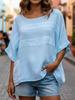 Женский летний повседневный свободный топ в европейском и американском стиле - с круглым вырезом, рукав 3/4