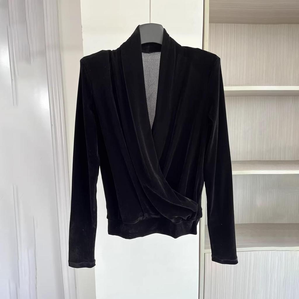 Velvet V-neck Crossover Long-Sleeve Women's Top - Autumn/Winter Slimming Versatile Layer