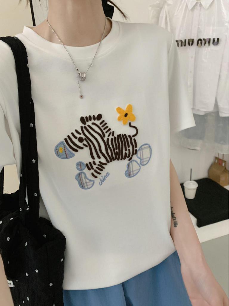 Korean Style Cartoon Zebra Embroidery Women's Loose Cotton Short Sleeve T-shirt