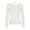 Стильный женский белый комплект из двух предметов с сетчатыми вставками, пэчворком и отделкой воланами, с прозрачным топом с длинным рукавом
