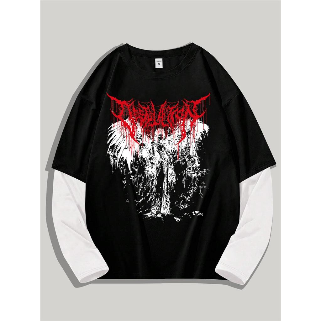 Мужская готическая футболка Y2k с принтом, оверсайз, с длинным рукавом, с круглым вырезом, уличная одежда, топ, весенняя посадка