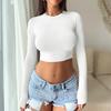 European & American Women's Autumn 2025 Sexy Round Neck Crop Top with Long Sleeves