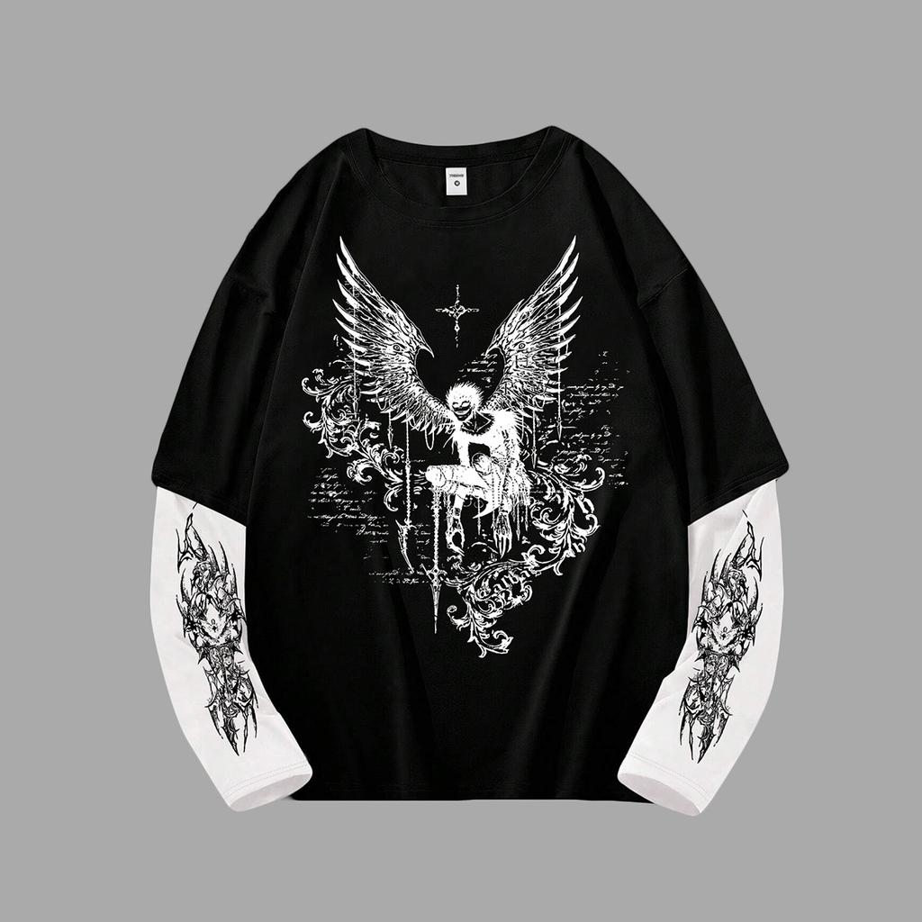 Мужская готическая футболка Y2k с принтом, оверсайз, с длинным рукавом, с круглым вырезом, уличная одежда, топ, весенняя посадка