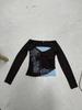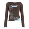 Осень 2025 Американский ретро Блок цветов Комплект из двух предметов Облегающая женская футболка