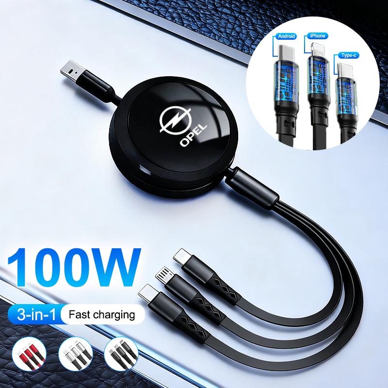 6A 100 Вт Кабель для передачи данных 3 в 1 Быстрый USB-кабель Выдвижной Портативная зарядная линия Для Opel Astra Insignia Vivaro Corsa Mokka Zafira OPC — купить товар онлайн с бесплатной доставкой по всему миру!