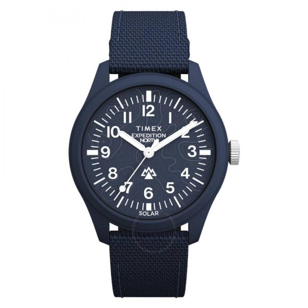 Синий биокерамический корпус с синим тканевым ремешком. Фиксированный синий биокерамический безель. Синий циферблат с серебристыми стрелками и арабскими цифрами часовых меток. Минутные метки по внешнему краю. Тип набора: аналоговый. Движение Солнца. устойчивый к царапинам минеральный кристалл. Тянуть / толкать заводную головку. Твердая задняя крышка. Круглая форма корпуса, размер корпуса: 40 мм, толщина корпуса: 10 мм. Пропускная способность: 20 мм. Застежка-пряжка. Водонепроницаемость до 30 метров/100 футов. функции: час, минута, секунда. Серия Traprock для экспедиций. Повседневный стиль часов. Варианты предметов: TW2W71200VQ. Мужские часы Timex Expedition Traprock с синим циферблатом TW2W71200.