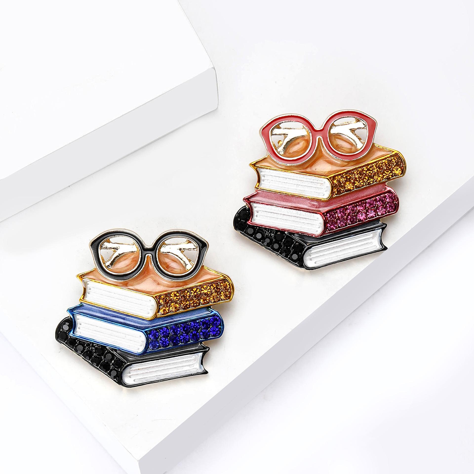 Эмалевые значки 'Книги и Очки' для Женщин Унисекс Любителя Чтения Вечеринки Броши Булавки Подарки
