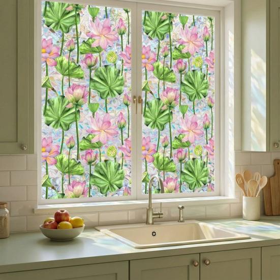 Водонепроницаемый с УФ-глянцевым защитным слоем: Благодаря добавлению УФ-глянцевого покрытия, наклейка полностью водонепроницаема и защищена от повреждений солнцем.. Этот защитный слой сохраняет яркость цветочного рисунка, одновременно предотвращая появление водяных пятен и обесцвечивание на ваших окнах или стеклянных дверях.