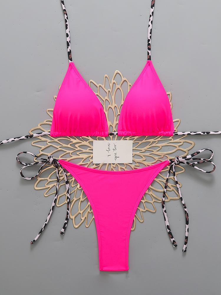 Сексуальный женский пляжный бикини с леопардовым принтом 2026 Купальник с завязками на шее Микро стринги Наборы бикини Женский купальник для ношения на пляже Купальный костюм