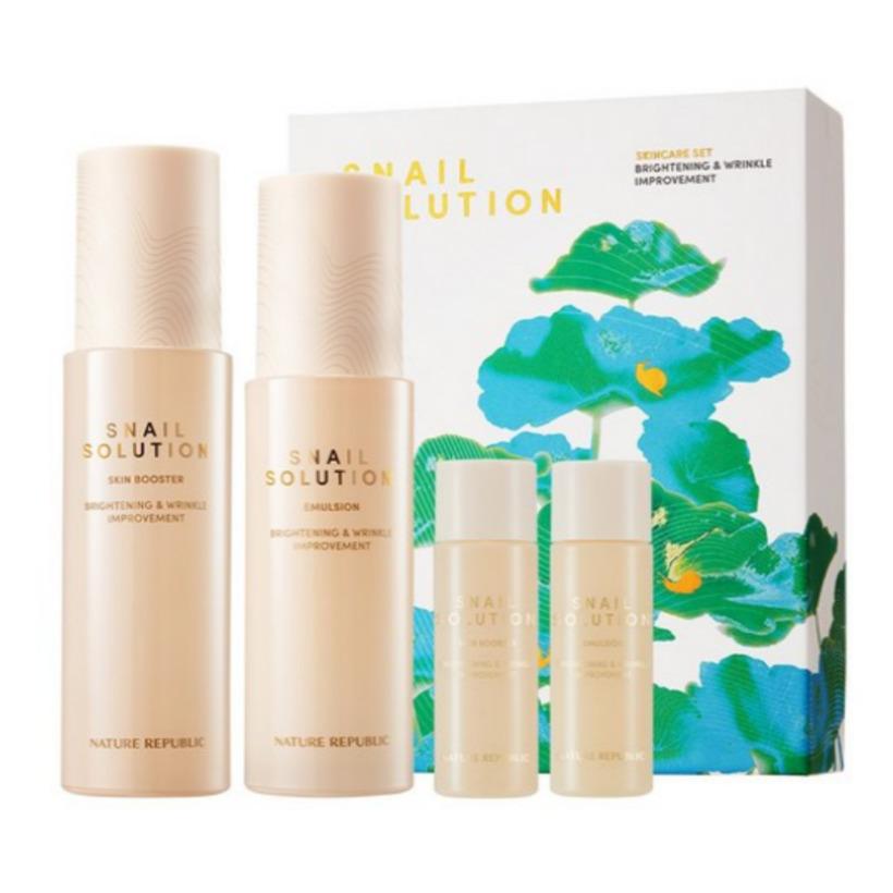 NATURE REPUBLIC Snail Solution 2 Special Set is a hydrating and firming skincare duo formulated with snail mucin extract.