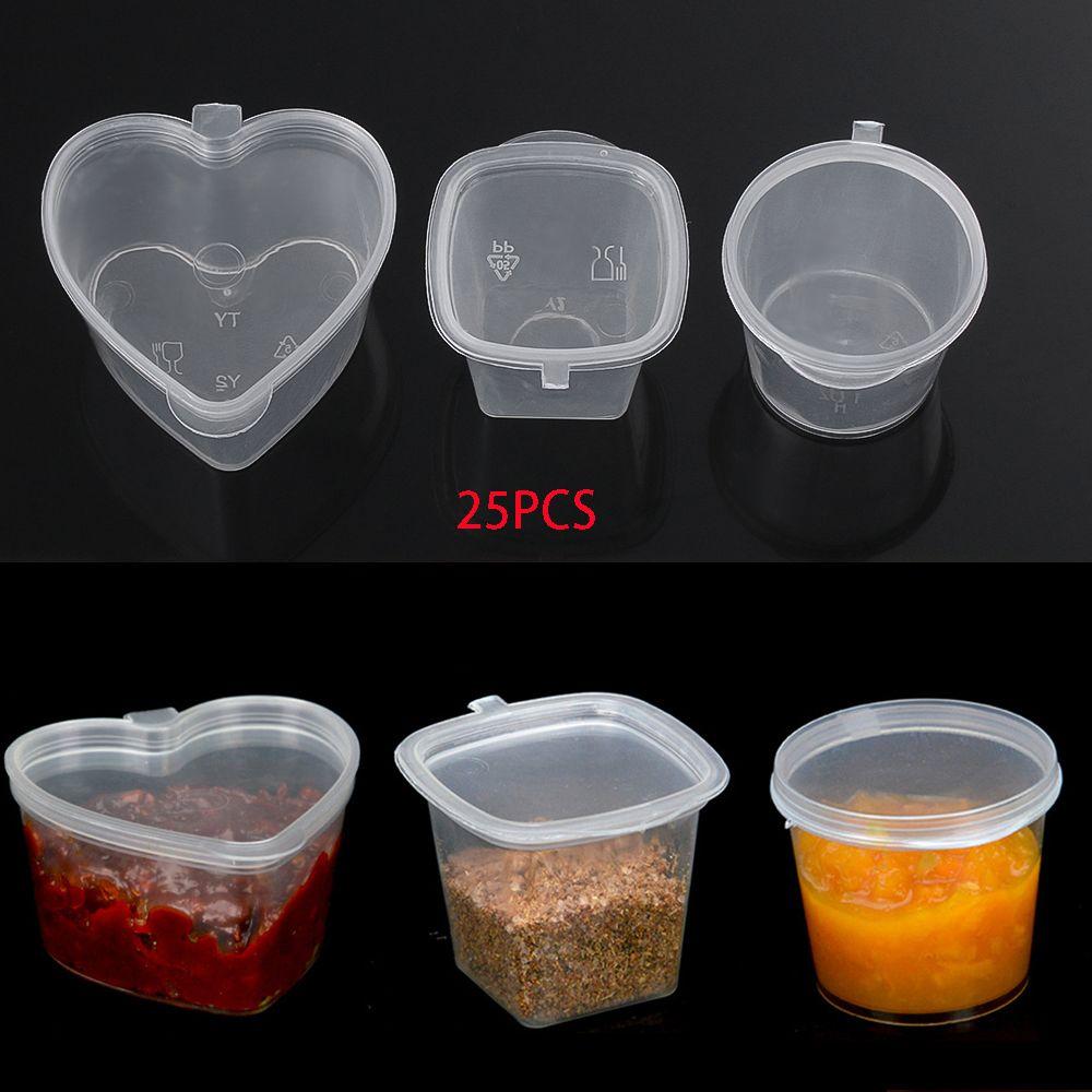 25Pcs Reusable Takeaway Plastic Food Containers Sauce Cup Palette Pigment Paint Box