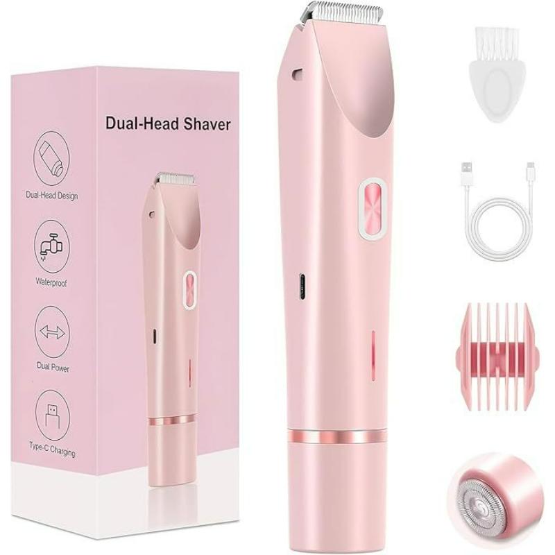 Электробритва , Триммер для бикини для женщин, 2 в 1, Влажное и сухое бритье, Водонепроницаемая электробритва, USB-перезаряжаемая, Двухголовочная бритва