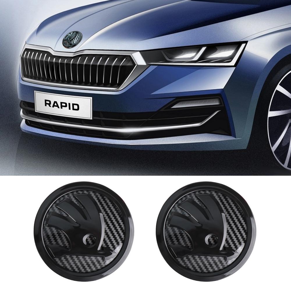2026 Hot 8/9/10cm Carbon Fiber Badge Car Front Hood Emblem Tail Trunk Logo Sticker For Skoda Octavia Karoq Skoda S VII Fabia Kam