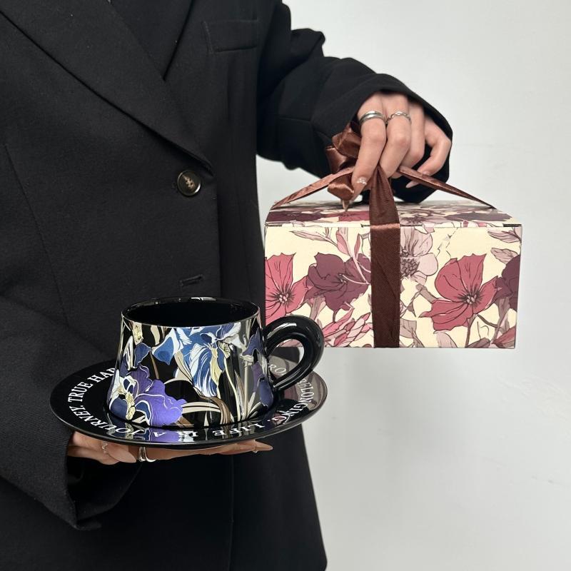 OLOEY Retro Hand-painted Purple Iris Bone China Coffee Set — купить товар онлайн с бесплатной доставкой по всему миру!