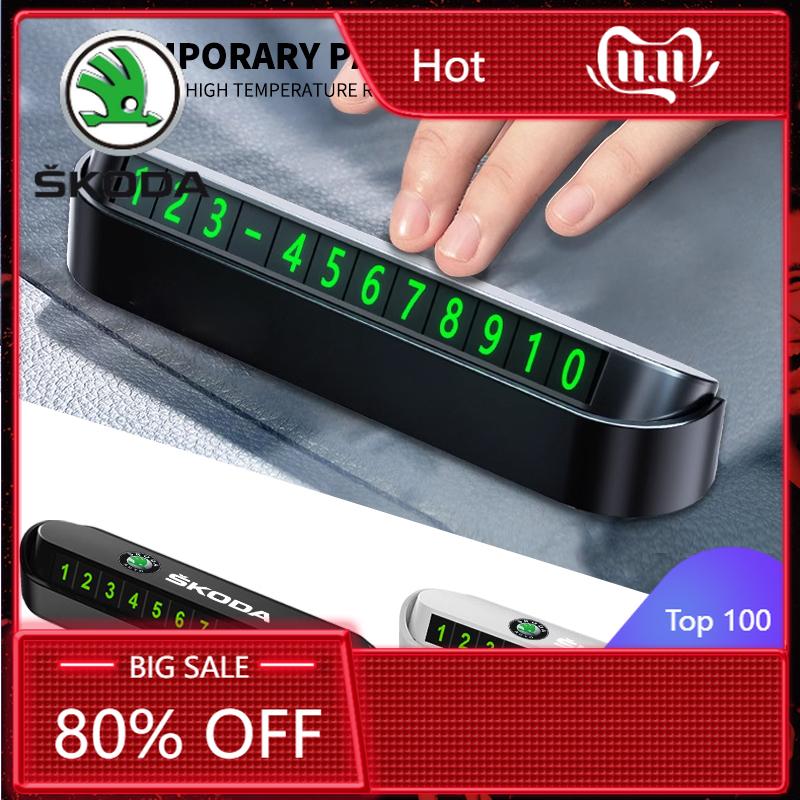 Car Sticker 2025 New Car Temporary Parking Card Sticker Phone Number Card Plate For Skoda Octavia Fabia Rapid Yeti Kodiaq Superb