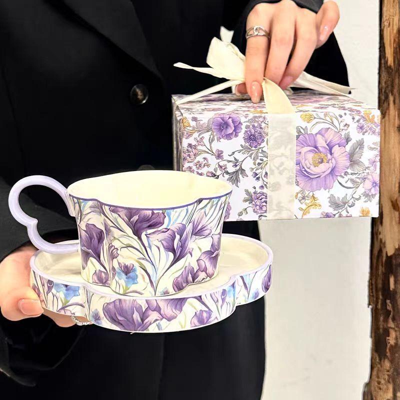 OLOEY Purple Iris Ceramic Portable Coffee Cup Set