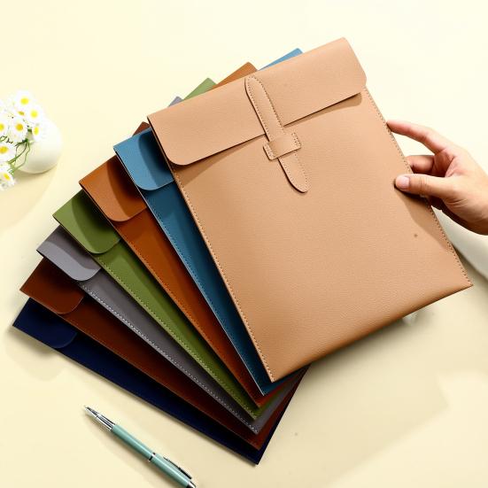 Материал из искусственной кожи премиум-класса: Изготовленная из высококачественной искусственной кожи, эта сумка для документов обладает мягкой, но прочной текстурой, которая защищает ваши важные бумаги от износа.. Его профессиональная отделка гарантирует вам безупречный вид в любой деловой обстановке, сочетая элегантность с долговечной износостойкостью.