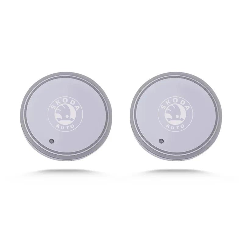 2025 New 2Pcs Car Logo 7Colors Water Cup Coaster Holder Color Atmosphere light For Skoda Octavia 3 2 Rapid Superb Fabia Kodiaq K