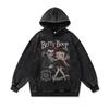 Американская ретро мультяшная толстовка с прямой печатью для мужчин и женщин, осенне-зимний оверсайз, стираный свитшот с капюшоном