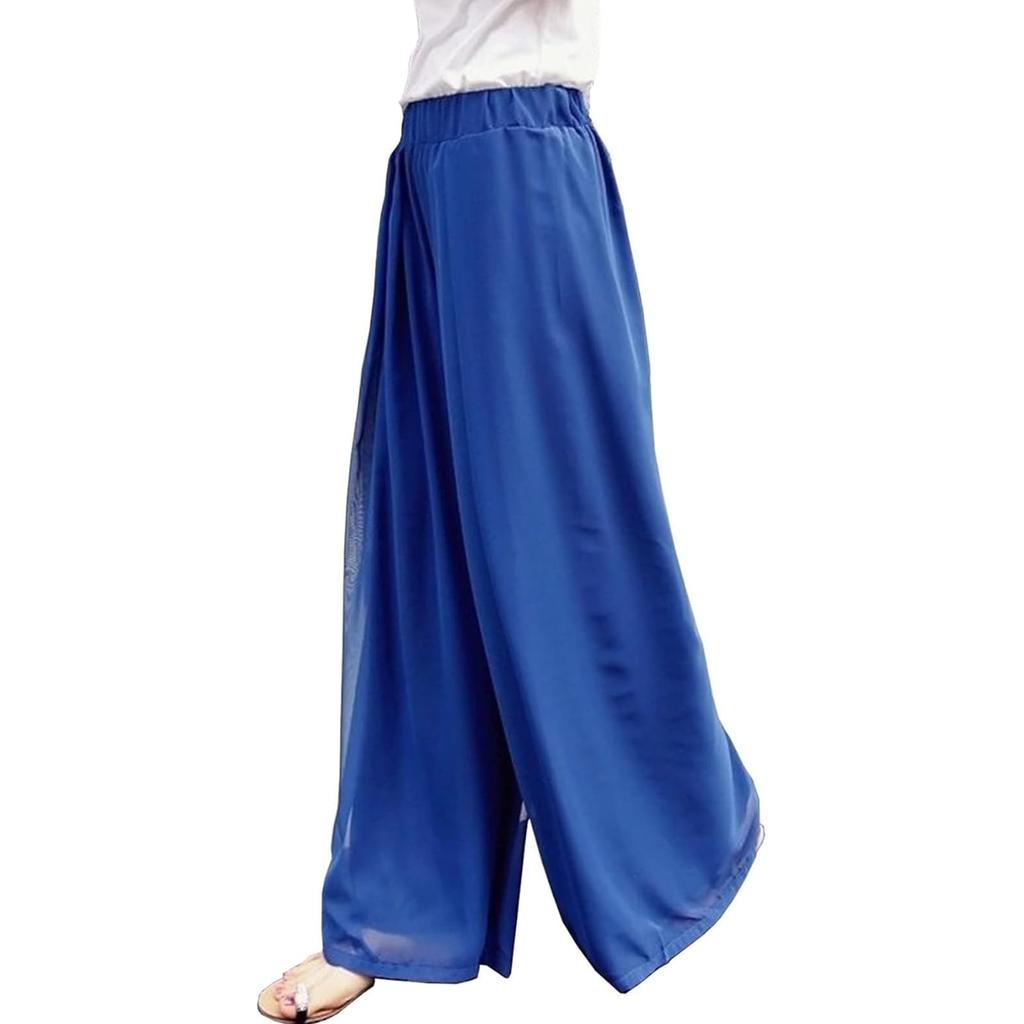 Chiffon Gaucho Loose Elastic Solid Plus Work Autumn [MlleeSSeeldyTRC] Women's Wide-Leg Pants, Fit, Waist, Full-Length, Lined, Color, Lightweight,