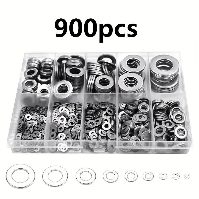 Набор шайб плоских из нержавеющей стали 304 в коробке-органайзере (900 шт., M2-M12, Тип O) — купить товар онлайн с бесплатной доставкой по всему миру!