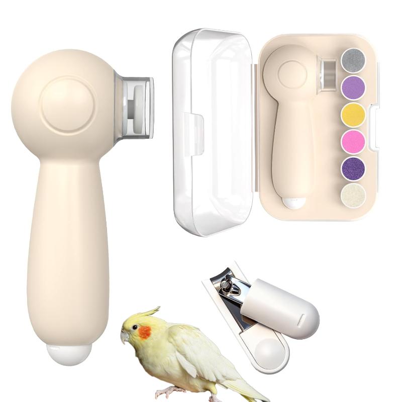 2-in-1 Bird Electric Nail File 6 Replaceable Grinding Pads Hidden Nail Clipper 360° Soft Light USB charge Quiet Nail Trimme