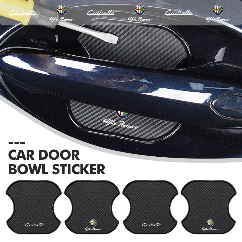 2026 Hot Alfa Romeo 4PCS Carbon Fiber Car Door Handle Protection Sticker Emblem Accessories For Alfa Romeo Giulietta GT 159 147