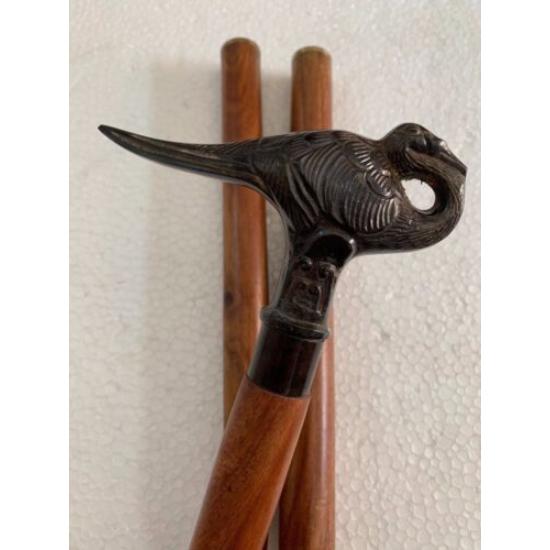 Трость трости античного стиля деревянная с ручкой твердой латунной птицы викторианской