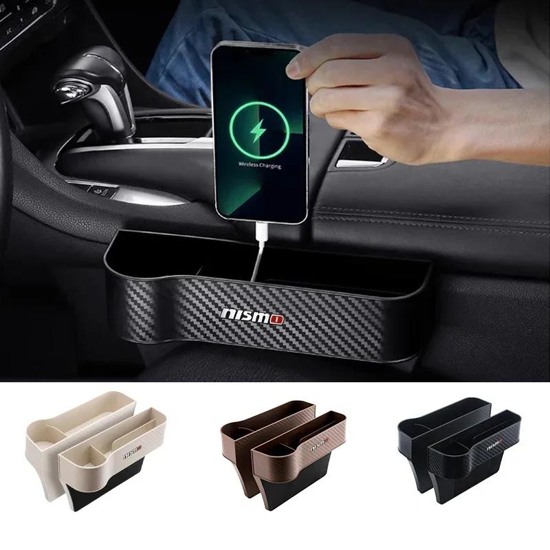 Car Carbon Fiber Pattern Seat Storage Box For Nissan Nismo Logo Tiida Teana Qashqai Juke X trail Note Almera Skyline Styling