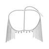 Элегантный дизайн включает три золотые цепочки с кисточками, с множеством коротких кисточек с каждой стороны, и семь подвесок из страз, украшающих лоб, создавая утонченный и привлекающий внимание образ..