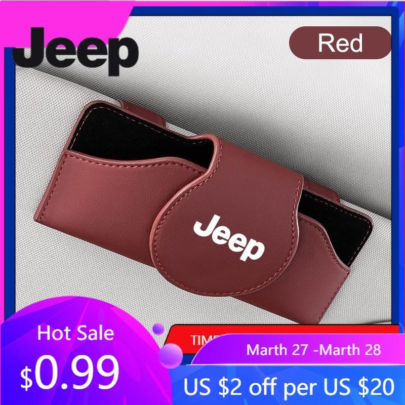 For Jeep Leather Car Glasses Case Sunglasses Storage Box Clip For Jeep Renegade Wrangler JL JK Gladiator Grand Cherokee Compa — купить товар онлайн с бесплатной доставкой по всему миру!