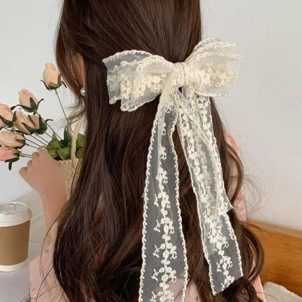 Французский стиль кружевной бант заколка для волос большая женская заколка кружевная вышивка заколка для волос аксессуар для волос