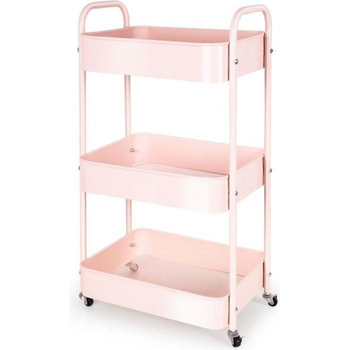 Chariot de rangement 3 niveaux rose, à roulettes et poignées, 41 × 30,5 × 76 cm — Cuisine / Buanderie