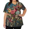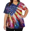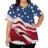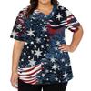 Женская модная повседневная рабочая рубашка с принтом американского флага и звезд к Дню независимости, с V-образным вырезом, короткими рукавами, разрезами по бокам и карманами