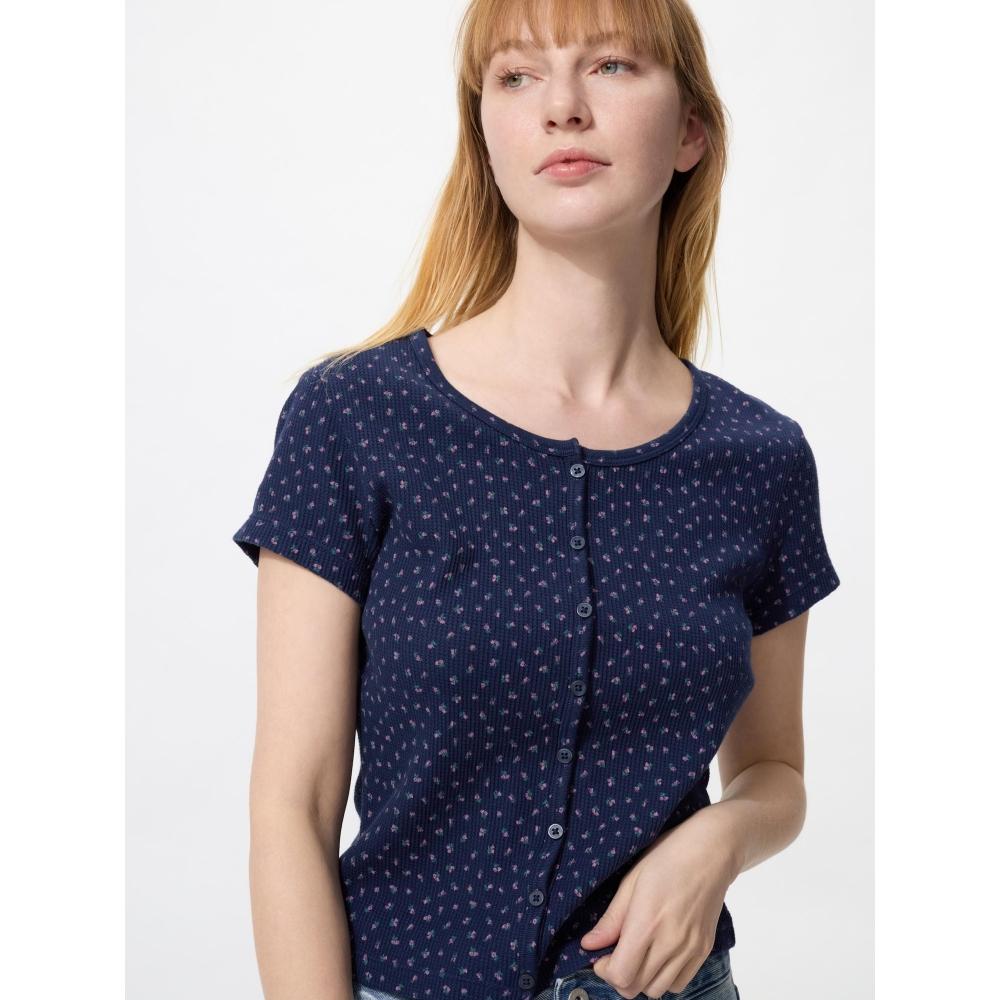 Мини-футболка UNIQLO Japan Waffle с полным раскрытием имеет дизайн, вдохновленный корсетами, с полностью расстегивающейся пуговицами передней частью и регулируемым вырезом, которые создают романтичный и элегантный силуэт.. Он также обеспечивает комфортную посадку и легко сочетается с различной одеждой благодаря своей универсальной прозрачности и облегающему крою.