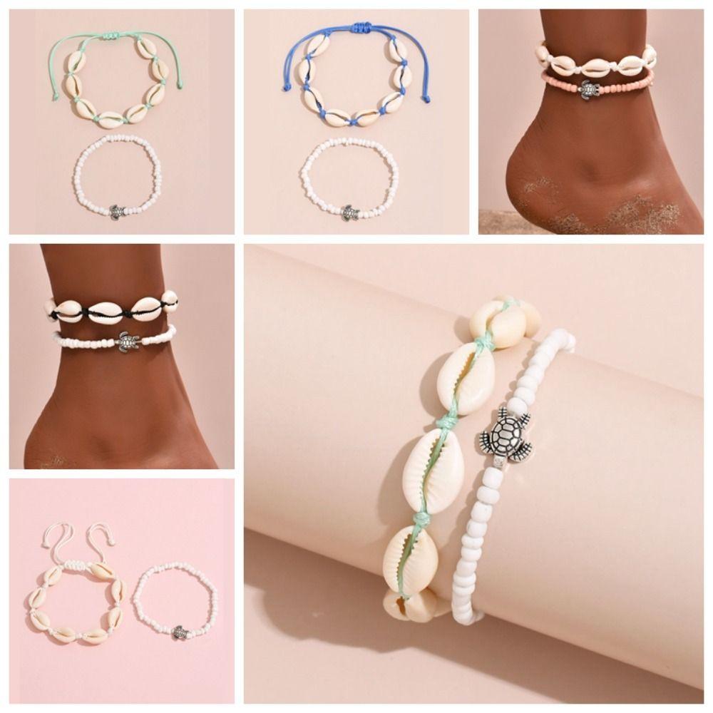 Набор из 2 браслетов на ногу из плетеного шнура и рисовых бусин с ракушкой, винтажный, пляжный — купить товар онлайн с бесплатной доставкой по всему миру!