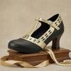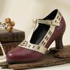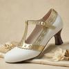 Женские Туфли-лодочки на ремешке-Т Киттен Хиллс Вырезанные из ПУ Обувь Маленькие Большие Размеры 32 50