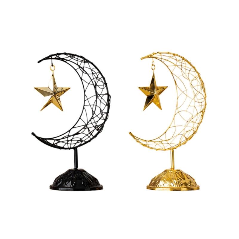 Artistic Middle Eastern Iron Moon Star Sculpture With Base Eid Ramadans Hollowout Ornament for Muslims Party Supplies