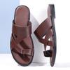Мужские черные кожаные тапочки Простые шлепанцы Летние коричневые уличные римские сандалии Уличная пляжная обувь для отца Большого размера