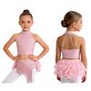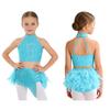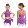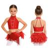 Блестящий костюм для танца с кисточками и перьями для девочек: Укороченный топ-халтер со спинкой на бретельках и юбка с эластичным поясом для сценического выступления