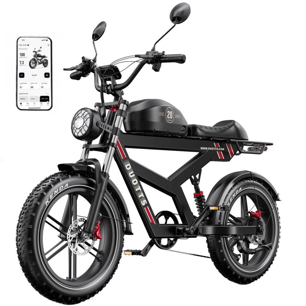 The F20 full-suspension electric mountain bike blends retro charm with modern features. Our vintage electric bike combines a retro design with an advanced full suspension system, ensuring a smooth, stable, and comfortable ride on all terrains. With timeless aesthetics and cutting-edge e-bike technology, this Duotts all-terrain electric mountain bike perfectly fuses elegance and power for a classic yet exciting riding experience.