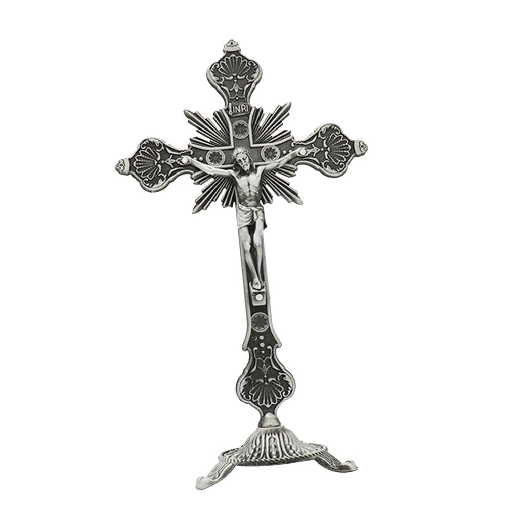 Настольный Распятие Статуя Крест Иисуса 10 дюймов Металлическое Маленькое Распятие Иисуса для Обеденного стола Домашний Декор Алтарь Молитвы Стол