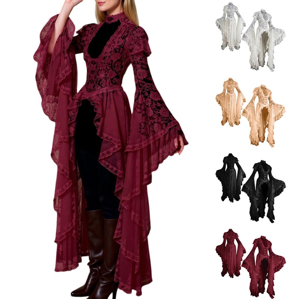 Винтажный Хэллоуин Средневековый Ренессанс Косплей Костюмы Платье Женское Готическое Кружевное Повязка Черное Маскарадное Платье Макси Платье Vestidos