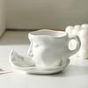 Face Shape Kissing Face Cups With Tray Coffee Cup Unique Artistic Ceramic Mug Home Use