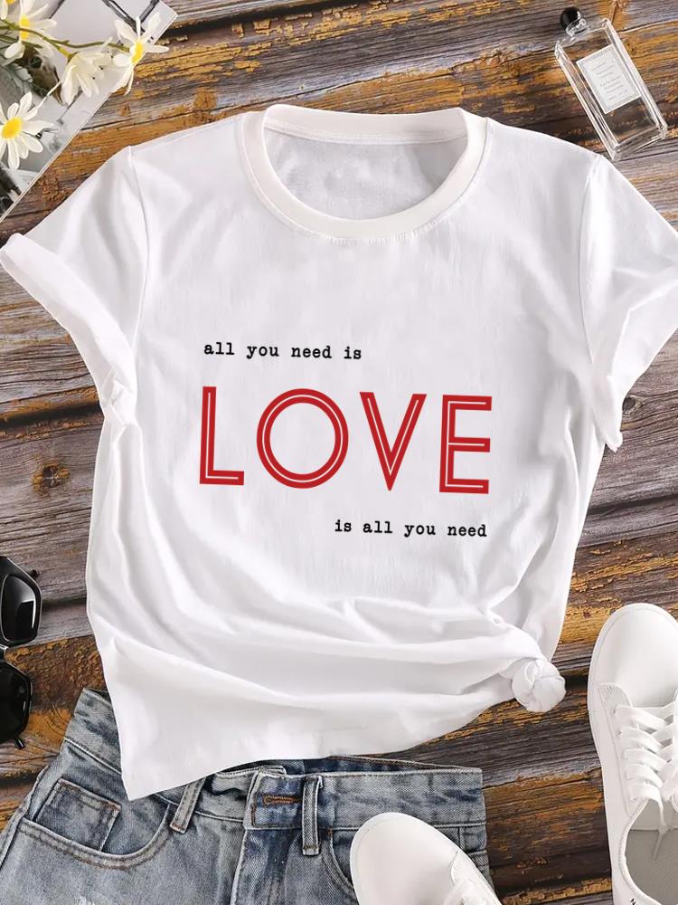 (Азиатский размер) letter lovely Lady футболка с круглым вырезом одежда с принтом женский топ повседневная мода женская графическая футболка футболки с коротким рукавом