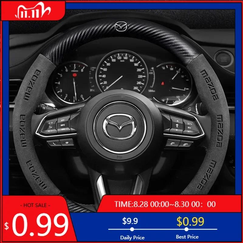 2025 Горячий Для Mazda 3 5 6 SKYACTIV Axela Atenza CX30 CX5 CX8 CX9 MX5 RX8 RX7 BT50 Углеродное волокно Замша Автомобильный Руль Чехол Аксессуар — купить товар онлайн с бесплатной доставкой по всему миру!