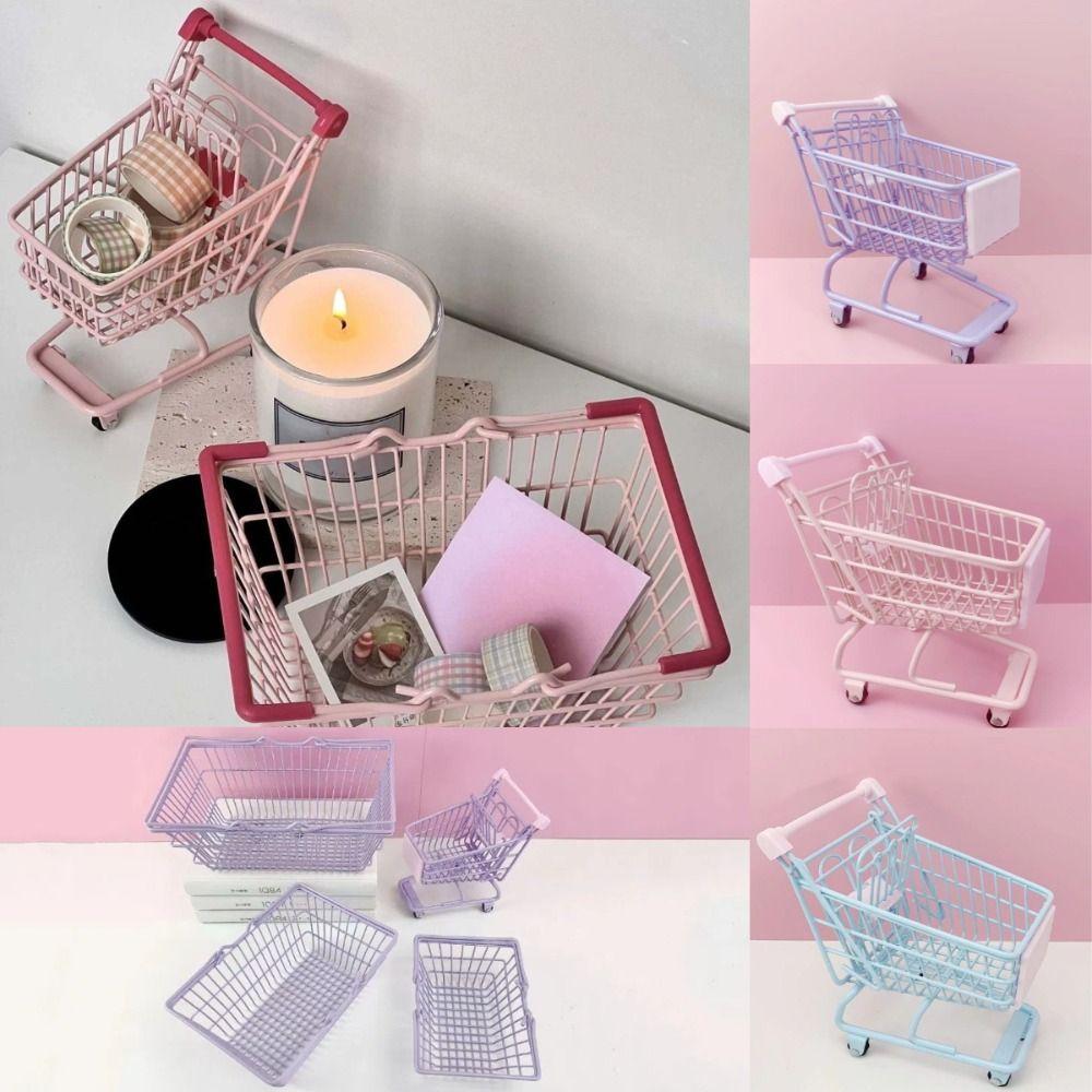 Model Mini Storage Basket Metal Toy Trolley Container Portable Shopping Cart Storage Desktop