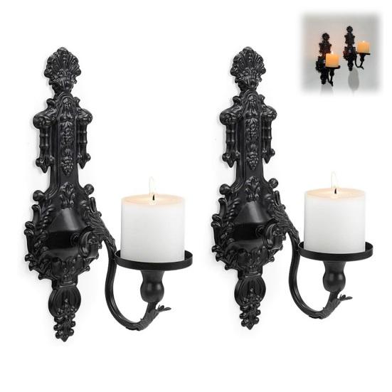 Благодаря атмосферному готическому дизайну, они привносят вневременную элегантность и ретро-шарм в любую комнату. Легкие и простые в установке, эти настенные подсвечники надежно крепятся передними винтами. (монтажное оборудование не входит в комплект поставки), не требующий сложных инструментов.